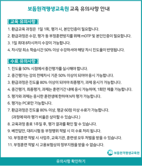 안녕하세요. 보듬평생평생교육원은 고용노동부 인터넷원격 훈련기관입니다.